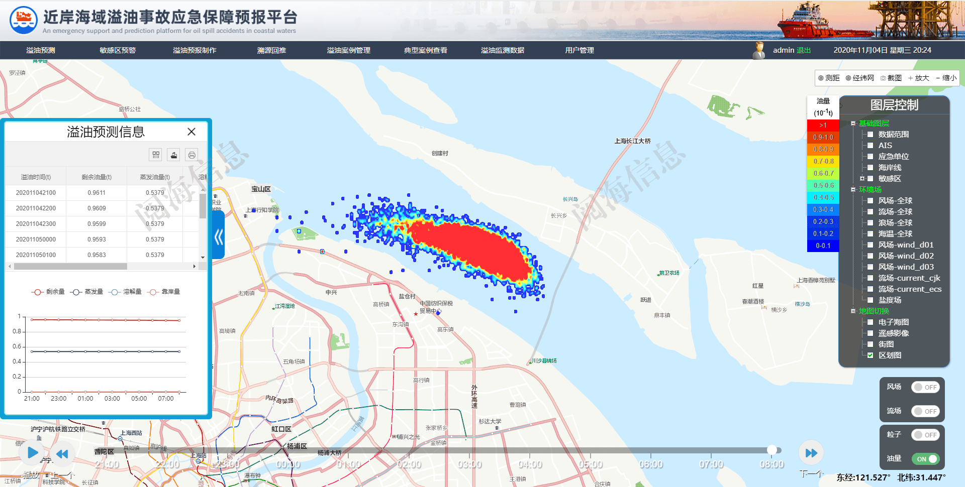 实现溢油污染物多类型漂移预测、敏感区快速预警、溯源回推、预报制作和海上状况显示等功能。