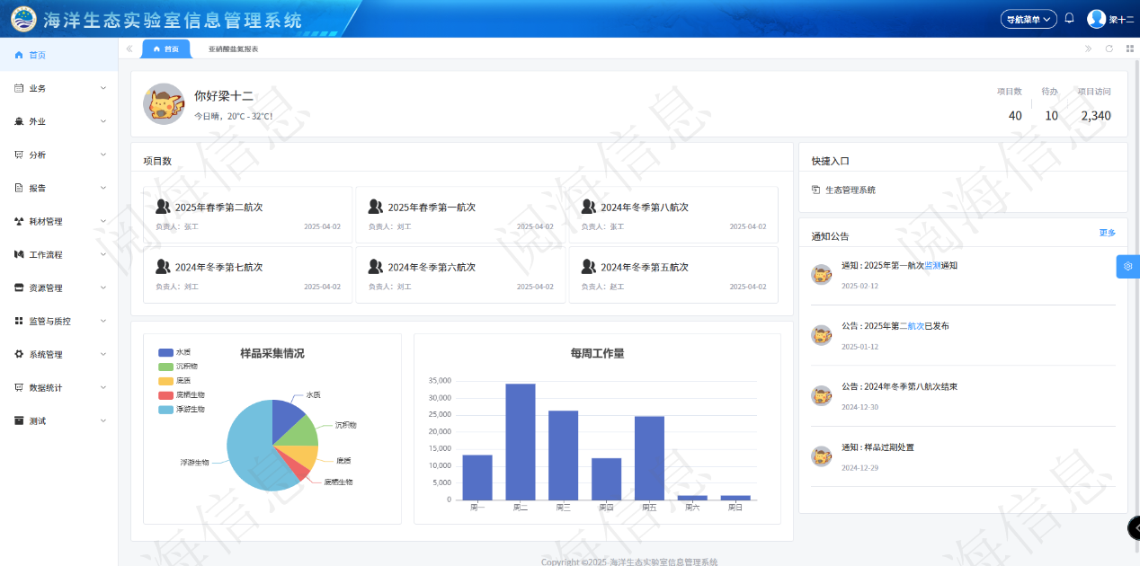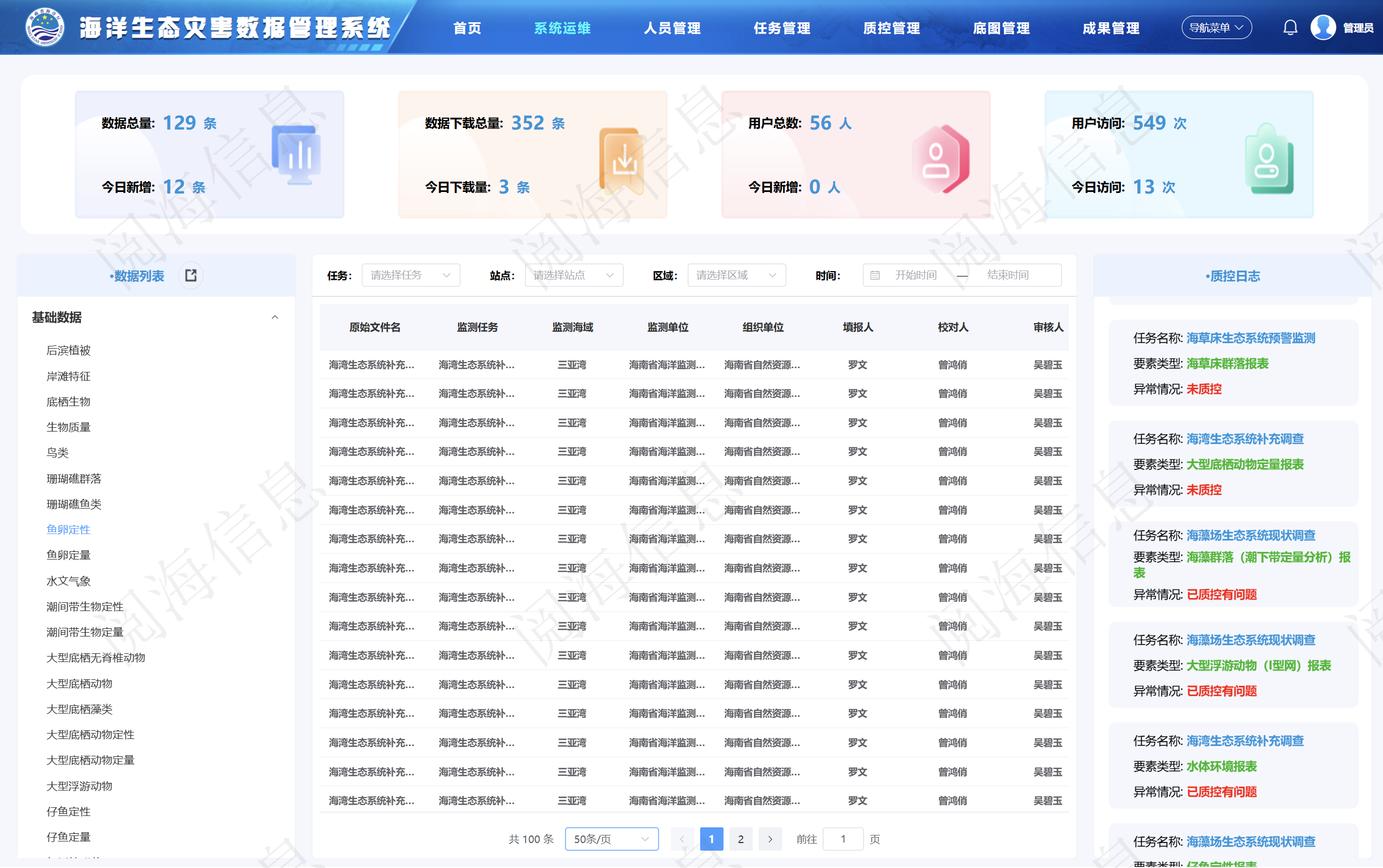 实现完全国产化替代 海洋生态监测数据自动化采集 样品检测任务全过程管理 数据自动化质控与审核入库 任务监督与数据共享
